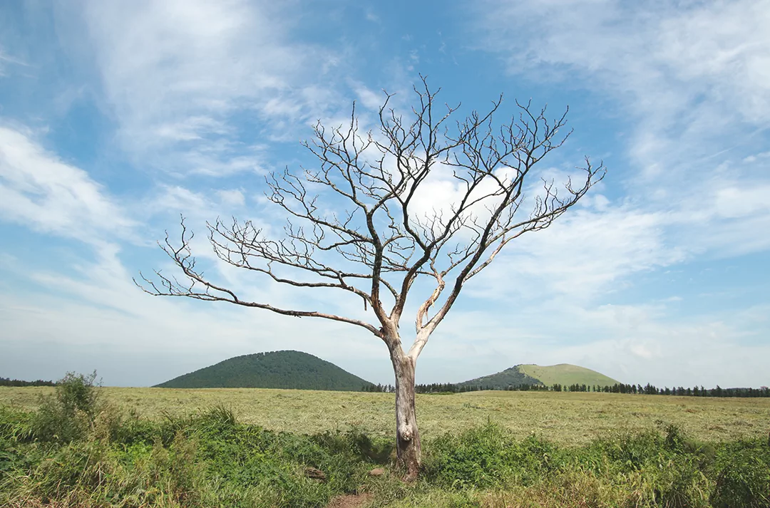 사진촬영 tip: 이달오름과 새별오름 사이 중앙에 나홀로나무를 위치시켜 촬영을 한다면 보다 멋진 사진을 담을 수 있습니다.