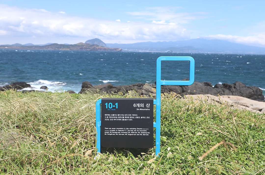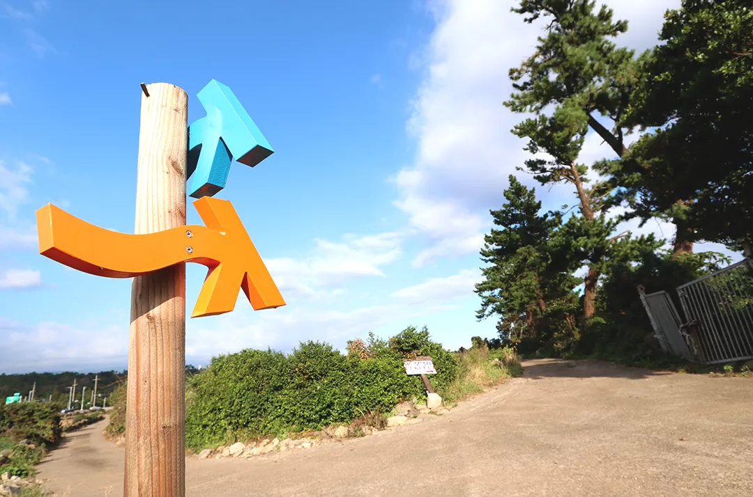 제주 올레길은 리본, 화살표, 간세 조형물 등으로 방향을 안내합니다.